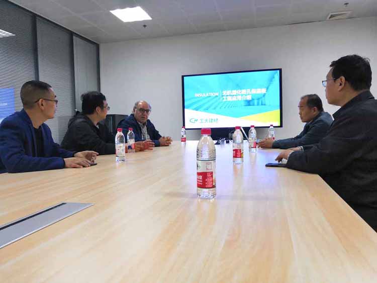 約旦ACC公司采用美國陶氏公司技術(shù)生產(chǎn)有機(jī)類保溫材料,產(chǎn)品廣泛應(yīng)用于中東建筑市場,但因達(dá)不到A級燃燒等級,近期在沙特的建筑工地二次引發(fā)了火災(zāi)。 為了盡快找到替代產(chǎn)品與生產(chǎn)技術(shù), ACC公司制造主管HANI ABU KHALAF先生到公司進(jìn)行了商務(wù)與技術(shù)交流,公司總經(jīng)理趙振波先生與技術(shù)團(tuán)隊(duì)參加了交流。客商對公司研發(fā)的無機(jī)塑化微孔保溫板項(xiàng)目表示了極大的合作興趣。